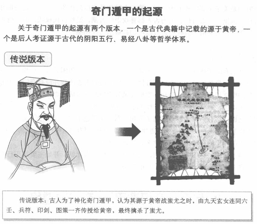 三式之一 在中国传统预测与决策术中,最高层次的决策术是“三式”,历史上它们都由掌管天文、历法、军国大事的少数人所掌握。所谓“三式”,是指太乙、奇门和六壬。其中太乙是以占测君国大事和自然灾异为主,奇门是以占测行军制敌为主,六壬以占测日用百事为主。之所以叫“式”,是因为它们都是用特制的式盘来进行推演的。奇门遁甲是以易经八卦为基础,又吸收综合了其他诸多门类的古代预测与决策术,可谓集其大成,成为最复杂的古代综合性信息库。 黄帝创奇门 关于奇门遁甲的起源,在《烟波钓叟歌》中记载,认为是源于黄帝战蚩尤之时,由天神传授黄帝,黄帝命其军师风后整理成文字。这种说法与产生于春秋战国时代的《黄帝内经》等一批托名黄帝的著述一样,显然不太可信。 一、考据版本:据有关研究奇门遁甲的专家考证,其源于古代的阴阳五行、易经八卦、天干地支和星相术,并将其最早应用于军事上。