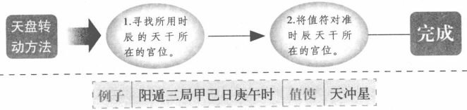天盘的转动方法 在找到了值符和值使后,就要开始转动天盘、人盘和神盘,这就介绍天盘的转动方法。天盘上排布的是九星和九颗奇子,九星的原始位置是天蓬星在坎一宫;天芮星在坤二宫;天冲星在震三宫;天辅星在四宫;天禽星在中五宫,于坤二宫;天心星在乾六宫;天柱星在兑七宫,天任星在民八宫,天英星在离九宫。奇子的原始位置与地盘上奇子的排布一样。 以上是天盘上的原始排布,在转动时,先要寻找用事时间的时辰的天干被排布在哪一宫,然后将值符对准这一宫的方位,这样天盘就完成了转动。此时天盘上的九星和奇子的位置都发生了变动,天盘成为此时辰的定局。 天盘转动示例 下面通过具体的例子来说明天盘的转动方法。比如,冬至上元,丙日,辛卯时用事,查得此时用阳遁一局。九星的原始宫位是:天蓬星在坎一宫,天芮星在坤二宫;天冲星在震三宫;天辅星在巽四宫;天禽星在中五宫,寄于坤二宫;天心星在乾六宫;天柱星在兑七宫,天任星在民八宫;天英星在离九宫。奇子的原始宫位是:戊在坎一宫;已在坤二宫:庚在震三宫;辛在四宫,壬在中五宫,寄于坤二宫;癸在乾六宫,丁在兑七宫;丙在民八宫,乙在离九宫。 首先确定旬首,辛卯时的句首是甲申,甲申隐藏在庚下,庚在震三宫。然后确定值符,由于旬首在震三宫,则值符就是天冲星。最后值符转到时辰的天干所在的宫位,辛卯时的天干“辛”在巽四宫,则值符天冲星就转到四宫。 天盘转动后,九星的定局宫位是:天蓬星在民八宫,天芮星在兑七宫,天冲星在巽四宫;天辅星在离九宫:天禽星在中五宫,寄于兑七宫,天心星在坎一宫;天柱星在乾六宫,天任星在震三宫;天英星在坤二宫。奇子的定局宫位是:戊在民八宫:已在兑七宫,庚在巽四宫;辛在离九宫;壬在中五宫,寄于兑七宫;在坎一宫,丁在乾六宫;丙在震三宫;乙在坤二宫。此时的天盘就是阳遁一局辛卯时的定局。 天盘转动示例详解 找到天盘值符和值使后,奇门适甲的天盘就可以转动,下面就通过阳遁三局庚午时为例加以说明。 |