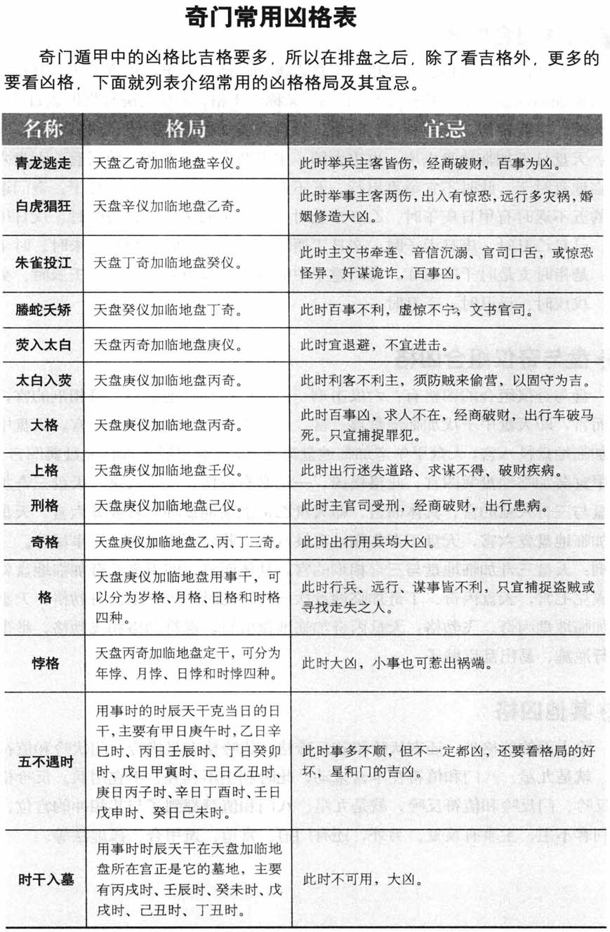 与奇门遁甲中的吉格相比,奇门遁甲中的凶格更多,下面就具体介绍各凶格的格局,并说明其格局所主的事情。 奇仪组合凶格 天盘奇仪和地盘奇仪组合形成的凶格有以下几种:青龙逃走:天盘乙奇加临地盘六辛,即乙加辛。此时举兵主客皆伤,经商破财,百事为凶。白虎猖狂:天盘六辛加临地盘乙奇,即辛加乙。此时举事主客两伤,出入有惊恐,远行多灾祸,婚姻修造大凶。朱雀投江:天盘丁奇加临地盘六癸,即丁加癸。此时主文书牵连、音信沉溺、官司口舌,或惊恐怪异,奸谋诡诈,百事凶。螣蛇天矫:天盘六癸加临地盘丁奇,即癸加丁。此时百事不利虚惊不宁,文书官司。荧入太白:天盘丙奇加临地盘六庚,即丙加庚。此时虽不会遇到什么灾难,却不宜马上采取行动。太白入荧:天盘六庚加临地盘丙奇,即庚加丙。此时须防贼来偷营,以固守为吉。大格:天盘六庚加临地盘六癸,即庚加癸。此时求人不在,以商破财,出行车破马死,百事凶,只宜捕捉罪犯。上格:天盘六庚加临地盘六壬,即庚加壬。此时远行迷失道路,求谋破财得病。刑格:天盘六庚加临地盘六己,即庚加己。此时主官司受刑,经商破财,出行患病。奇格:天盘六庚加临地盘三奇,此进出行用兵都大凶。伏宫格:天盘六庚加临地盘六甲值符宫,即庚加戊。此时主客皆不利,求人不在,等人不来,出行在路上遇盗贼,或车折马死,百事不顺。飞宫格:天盘六甲值符加临地盘六庚,即戊加庚。此时作战主败亡,大将遭擒;做生意破财,必须换地方。天网四张:天盘六癸加临地盘六癸,即癸加癸。此时不可举事,举事不成,反而有灾祸。在古籍中,有的认为天网四张是天盘六癸加临地盘时干或天盘时干加临地盘六癸,这些说法是错误的,因为前面的“十干克应”中癸与十干相遇都有不同的名称,如果把它们都称为天网四张,就是十分混乱。另外,天网四张有高格和低格两种,天网高格是指天网在一、二、三、四宫;而在六、七、八、九宫则为天网高格。 时间组合凶格 由时间决定的凶格有:岁格:天盘六庚加临地盘看干,用事大凶。月格:天盘六庚加临地盘月干,用事大凶。日格:又称伏干格,天盘六庚加临地盘日干,用事大凶,主客皆伤,尤不利主。时格:天盘六庚加临地盘时干,用事大凶。飞干格:天盘日干加临地盘六庚,也主大凶,主客两伤,皆不利。地网遮:天盘六壬加临地盘时干,此时不宜举事出行。五不遇时:是指用事时干克日干。奇门遁甲中的五不遇时有甲日庚午时、乙日辛巳时、丙日壬辰时、丁日癸卯时、戊日甲寅时、己日乙丑时、庚日丙子时、辛日丁酉时、壬日戊申时、癸日己未时。时干入墓:是指时支是时干的墓库,奇门遁甲中的时干入墓有:丙戌时、壬辰时、癸未时、戊戌时、己丑时、丁丑时。 盘与奇仪组合凶格 盘与奇仪组合的凶格有:六仪击刑:天盘值符加临地盘与值符相刑的宫,具体而言,即天盘甲子戊加临地盘震三宫、天盘甲戌己加临地盘坤二宫,天盘甲申庚加临地盘艮八宫,天盘甲午辛加临地盘离九宫,天盘甲辰壬加临地盘巽四宫,天盘甲寅癸加临地盘巽四宫,此格极凶,一动必有灾伤。三奇入墓:天盘三奇加临地盘与三奇入墓的宫,具体而言,即天盘乙奇加临地盘坤二宫或乾六宫,天盘丙奇加临地盘乾六宫,天盘丁奇加临地盘艮八宫,此时百事不宜,谋事尽休。三奇受刑:天盘三奇加临地盘与三奇相刑的宫,具体而言,即天盘乙奇加临地盘乾六宫或兑七宫,天盘丙奇、丁奇加临地盘坎一宫,此时不可行动。符勃格:天盘值符加临地盘丙奇。飞勃格:天盘丙奇加临地盘值符。遇符勃格和飞勃格,举事会倒行逆施,易出乱臣贼子。 其他凶格 除上面的凶格外,还有伏吟格和反吟格,伏吟格有星伏吟、门伏吟和值符伏吟,就是九星、八门和值符在本宫未动,此时利主不利客,不宜用兵。反吟格有星反吟、门反吟和值符反吟,就是九星、八门和值符都到了与其相冲的宫位,此时利客不主,主事有反复。另外,还有门迫、宫迫、遁甲合、孤虚法等。 |