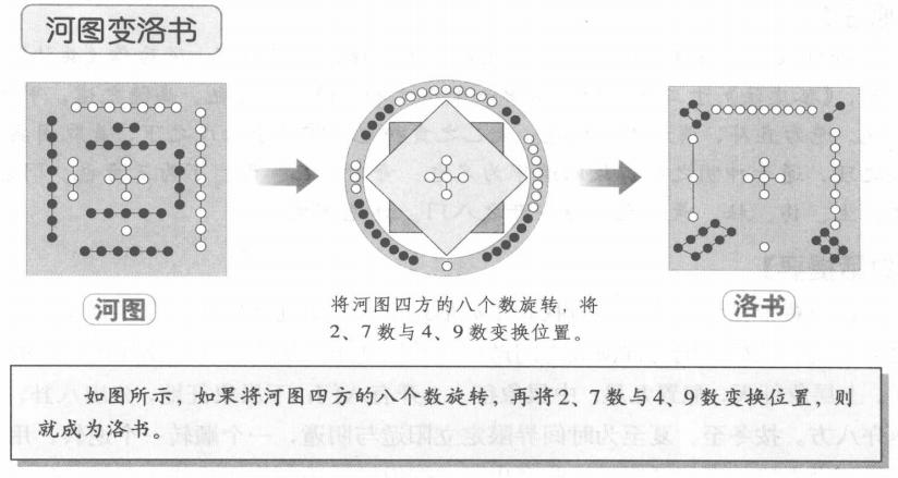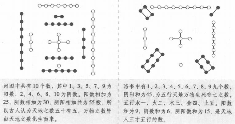 河图洛书概说 黄帝得到的天书中的龙甲图册就是河图洛书,下面就详细介绍一下河图洛书的由来和其中的涵义。 河图洛书由来 据上所述,河图先于黄帝产生,洛书却后于黄帝产生,那么奇门遁甲产生于河图洛书就是矛盾的,于是古人解释说,黄帝在让风后演制奇门遁甲时与后世的洛书产生了暗合现象。 河图洛书的涵义 【白话提要】 又据古代神话传说,在伏羲时期,有一匹龙马出现在黄河上。它的形象马,身有龙鳞,高八尺五寸,长颈,骨骼上长有翅膀,可以在水面上行走。据汉代学者孔安国、刘向的解释,龙马背上生有旋毛如星点一般,后一、六点,前二、七点,左三、八点,右四、九点,中间五、十点,称为龙图,又叫河图。古代河图上的奇偶数与黑白点由此而来。又在大禹冶水的时期,有一个神龟在洛河出现,背上有裂纹,前九、后一,左三、右七,中五,前右二、前左四,后右六、后左八,称为洛书。古代洛书上的点与数字排列由此而来。河图与洛书上的数字配置,现在看来也是很巧妙的。古人认为它们是八卦的起源。但这里有个矛盾现象,黄帝时期还没有大禹与洛书,八卦和奇门遁甲怎么会产生呢?古人勉强解释说,是黄帝的宰相风后在演制时与后世的洛书产生了“暗合”现象。可见,关于古代的各种传说,矛盾、混乱与错误之处是很多的,有时甚至是永远说不清楚的。 河图洛书与奇门遁甲 河图洛书中蕴藏着丰富的涵义,其实由河图可推导出洛书,由洛书可推出与奇门遁甲相关的九宫八卦。 |