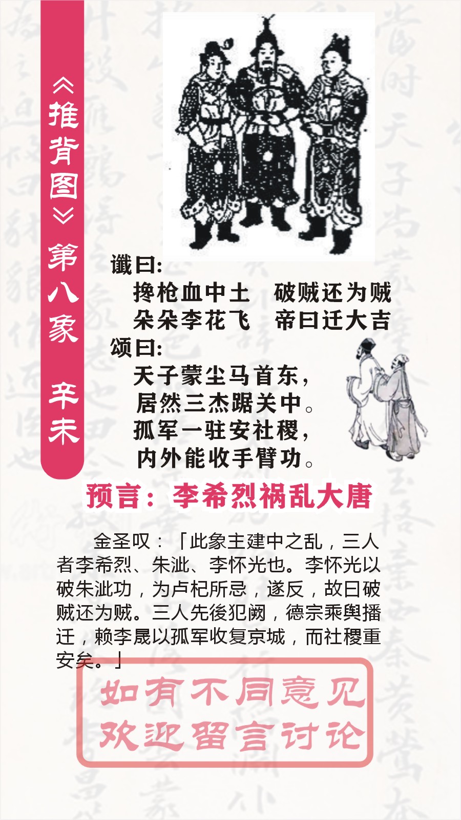 第八象:辛未。坤下离上,火地晋卦。预言李希烈祸乱大唐