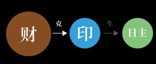 那财坏印怎么办呢?解药就是用官杀来通官,见了官杀,财就不去搞印的事情了,心甘情愿的去生官。官杀当然是跟印一头的,就把从财那里得到的能量转手就给了印,这就叫做流通。