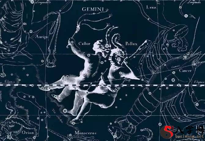 双子座,风元素的变化星座,黄道十二宫的第三个星座,金牛座之东,巨蟹座之西。